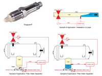 SLUGGUARD est un capteur de détection d’eau dans le JETA1 qui peut s’utiliser seul, connecté à une alarme ou dans un ensemble : DRAINGUARD. Il est généralement connecté au puisard du FWS, et possède ou pas une led d’indication. La lumière s’allume lorsque des traces d’eau sont détectées. Ce détecteur n’a pas besoin d’être recalibré.