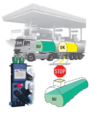Pour le transport d'essence, il faut s'assurer que le bon produit est livré du portique de chargement au bon réservoir de carburant à la station d'essence. C'est la responsabilité de la prévention des transferts croisés. Lors du chargement par le bas, les données du produit sont transférées électroniquement vers l'ordinateur COP du camion-citerne. Les quantités restantes dans les compartiments sont précisées à l'avance. Ceci exclut le chargement du compartiment incorrect ou du mauvais produit. Lors de la livraison au réservoir de la station-service, seul le remplissage correct du réservoir est possible et, en même temps, le raccordement correct du tuyau de récupération des vapeurs peut être surveillé et l'affectation correcte pour la prévention des débordements peut être garantie selon EN 13616.